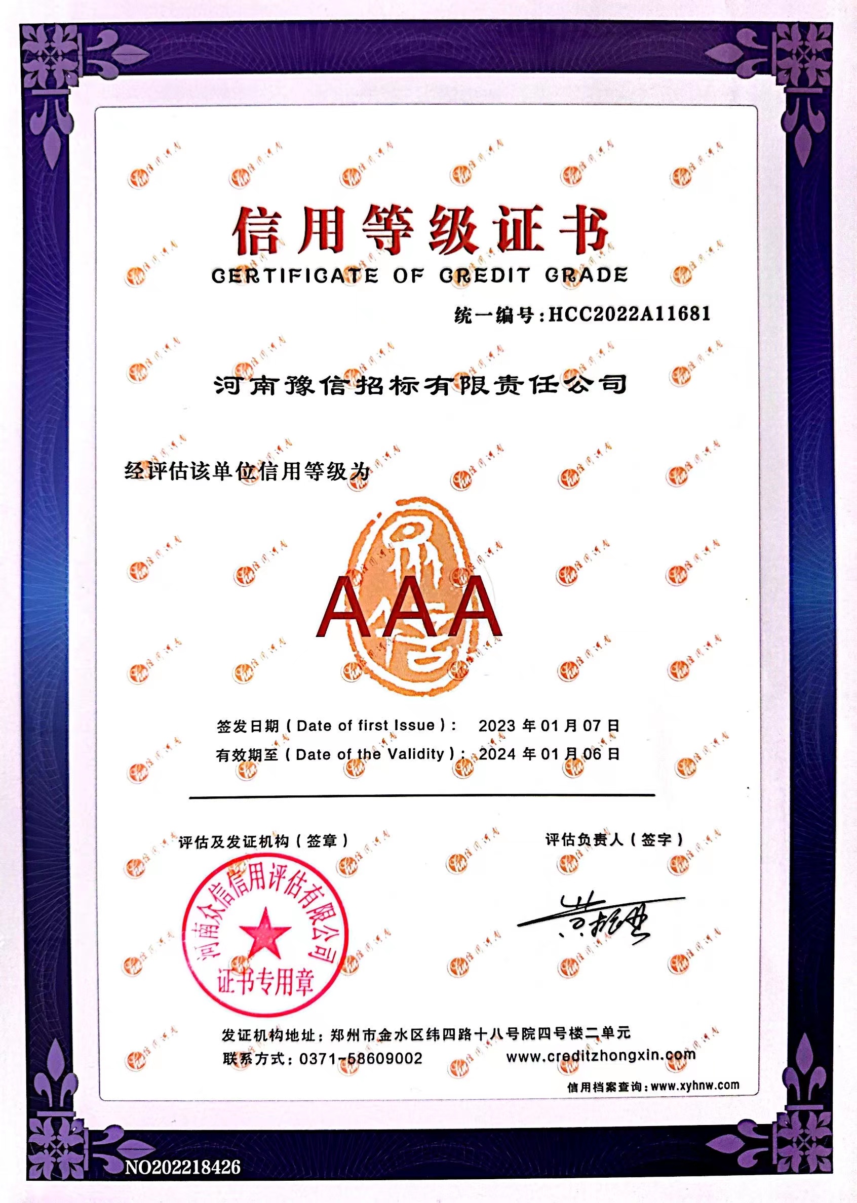 2021年鄭州市招標(biāo)代理AAA級(jí)信用企業(yè) -