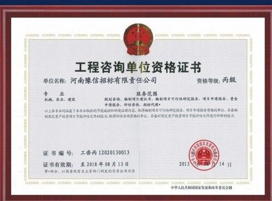 工程造價咨詢企業(yè)乙級資質(zhì)證書