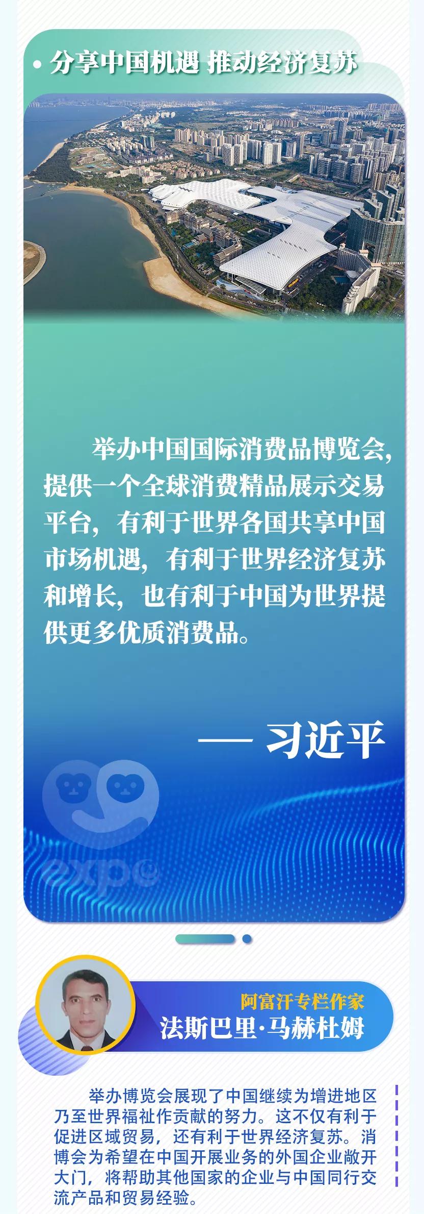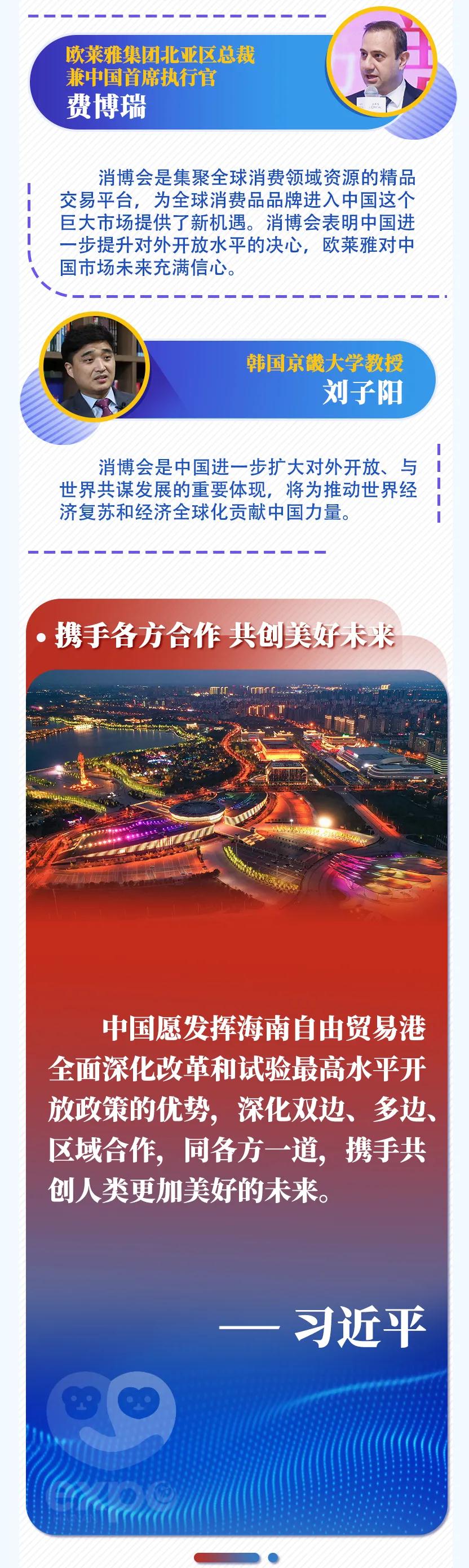 新華社北京57日電 首屆中國國際消費品博覽會6日在海南省??谑虚_幕,國家主席習近平致賀信。多國人士表示,舉辦國際消費品博覽會不僅是中國同各國共享發(fā)展機遇的重大舉措,還將對各國加強合作、實現(xiàn)互利共贏產(chǎn)生重要影響