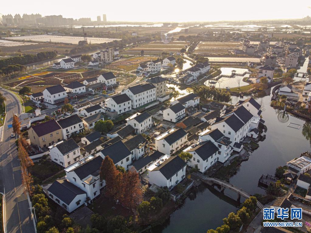 嘉興市秀洲區(qū)油車港鎮(zhèn)勝豐村景色(無(wú)人機(jī)照片,2020年12月15日攝)。新華社發(fā)(江漢 攝)