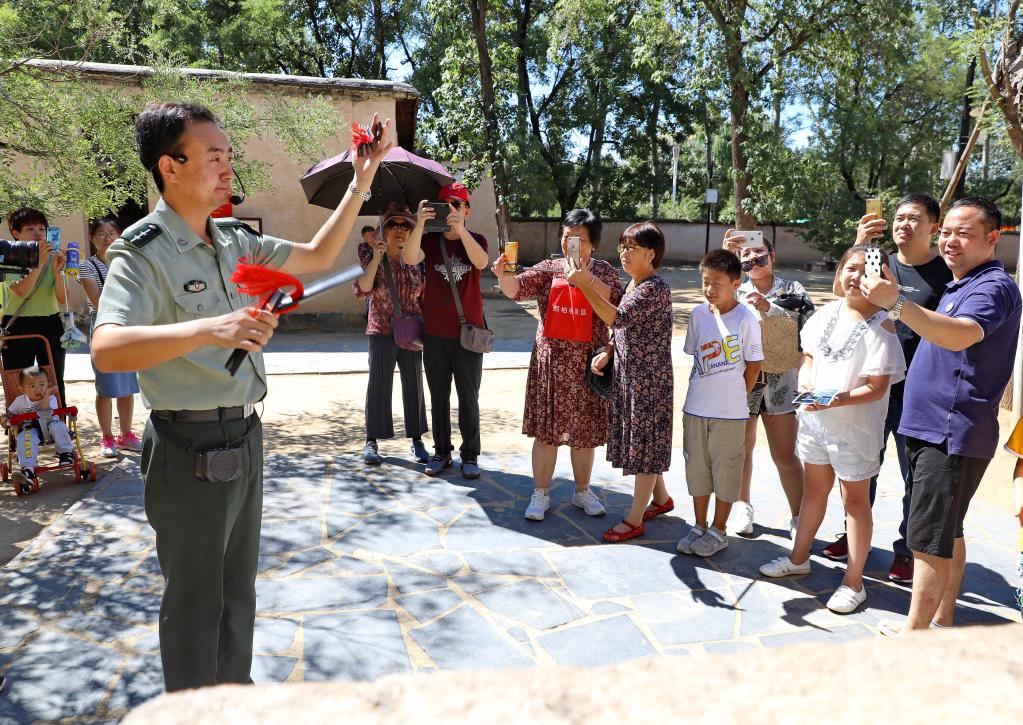在西柏坡舊址,講解員韓向飛為游客進(jìn)行講解(2019830日攝)。新華社記者楊世堯攝