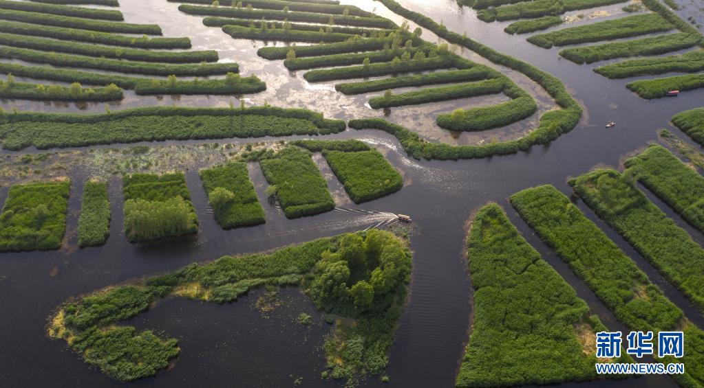 這是5月25日在雄安新區(qū)拍攝的白洋淀美景(無人機(jī)照片)。新華社記者 才揚 攝