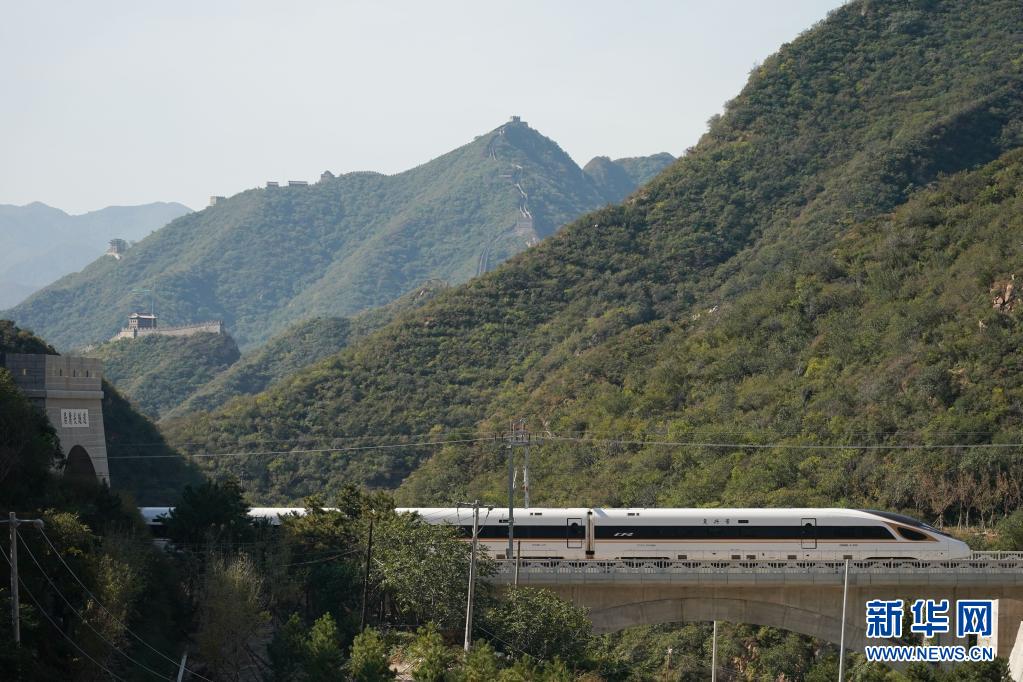 一列復興號高鐵列車從京張高鐵駛過居庸關(guān)長城(2020年10月6日攝)。新華社記者 鞠煥宗 攝