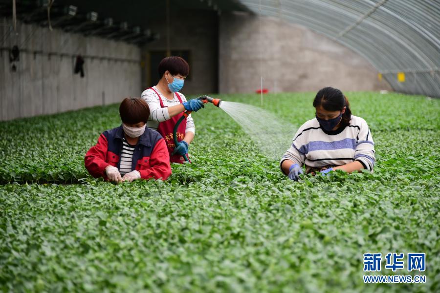 河北曲周縣一家育苗產(chǎn)業(yè)基地的工人在育苗溫棚內(nèi)工作(54日攝)。曲周縣積極拓寬產(chǎn)業(yè)扶貧渠道,發(fā)揮當?shù)禺a(chǎn)業(yè)優(yōu)勢,統(tǒng)籌協(xié)調(diào)貧困戶利用扶貧資金入股現(xiàn)代設施農(nóng)業(yè)基地,帶動群眾脫貧增收。新華社記者 朱旭東 攝
