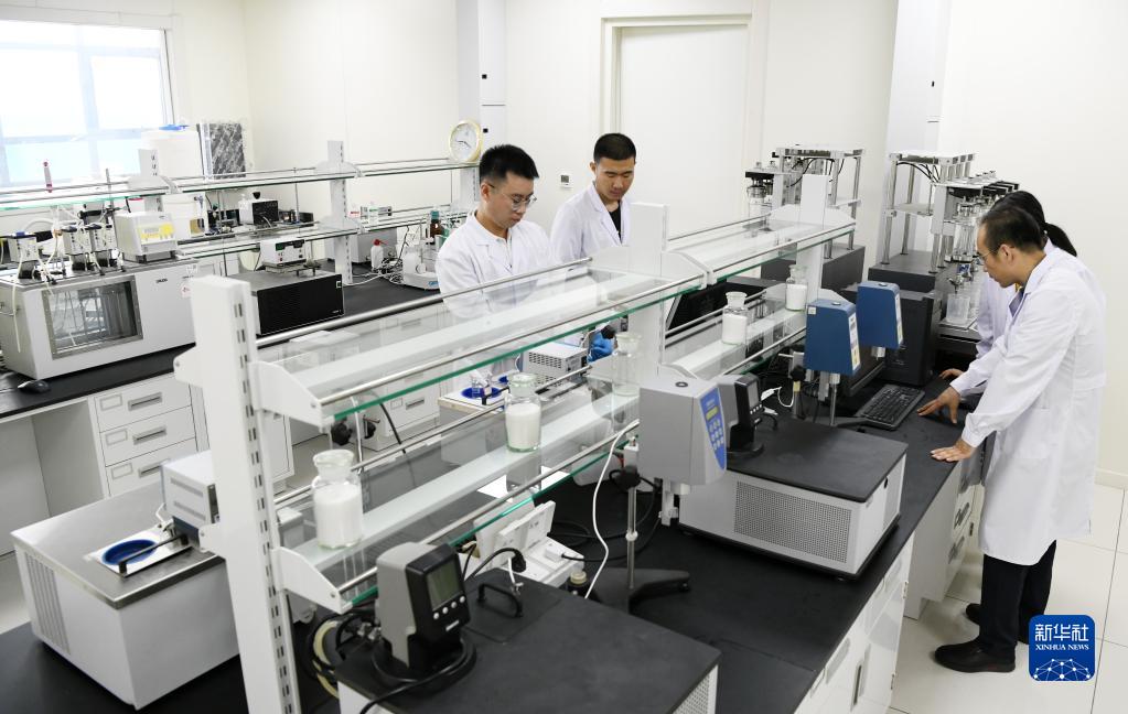 在大慶油田勘探開(kāi)發(fā)研究院,科研人員在進(jìn)行聚合物驅(qū)油實(shí)驗(yàn)(2019年6月26日攝)。新華社記者 王建威 攝