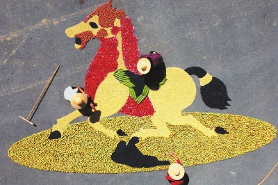 9月22日,在欒川老君山景區(qū),農(nóng)家賓館經(jīng)營者用山楂、甜棗、苦瓜、辣椒等農(nóng)作物曬秋,造型生動。 本報記者 王錚 攝