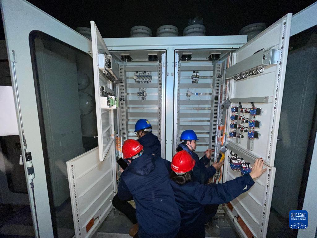 “韓舒技師創(chuàng)新工作室”團(tuán)隊(duì)在一處突發(fā)照明電源失電現(xiàn)場搶修(2月12日手機(jī)拍攝)。新華社發(fā)