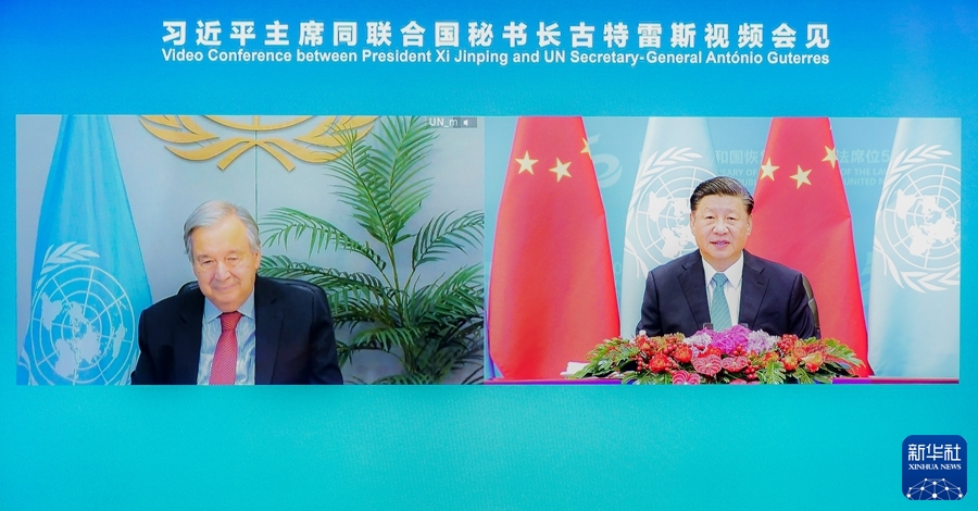 新華社北京10月25日電  國(guó)家主席習(xí)近平25日上午在北京人民大會(huì)堂以視頻方式會(huì)見聯(lián)合國(guó)秘書長(zhǎng)古特雷斯。