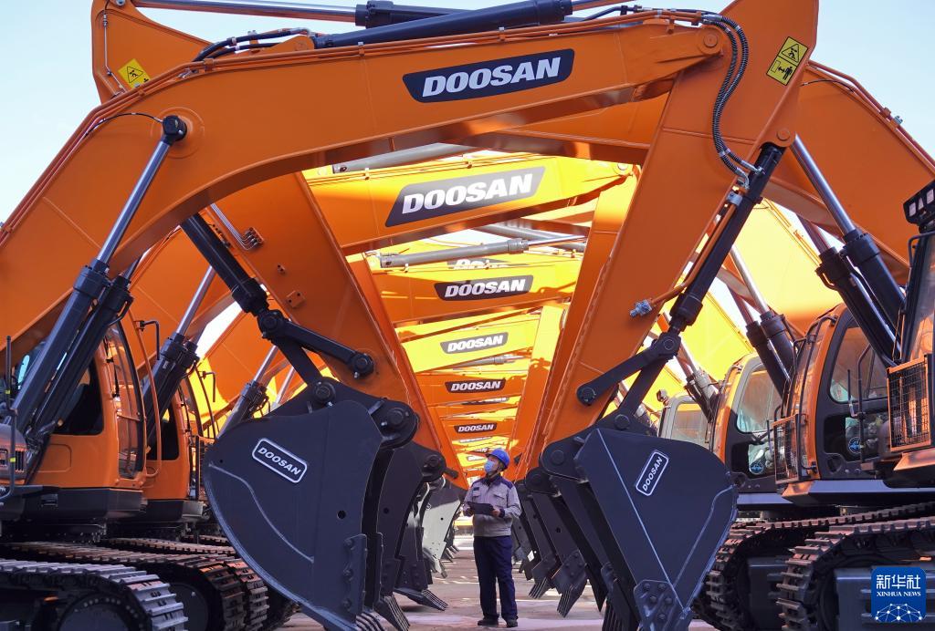 1月17日,在山東煙臺開發(fā)區(qū)一家工程機械有限公司,工作人員對出廠車輛進行檢查。新華社發(fā)(唐克 攝)