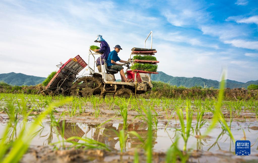 4月12日,江西省九江市都昌縣蔡嶺鎮(zhèn)楊灣村農(nóng)民駕駛農(nóng)機在田間勞作。新華社發(fā)(傅建斌攝)