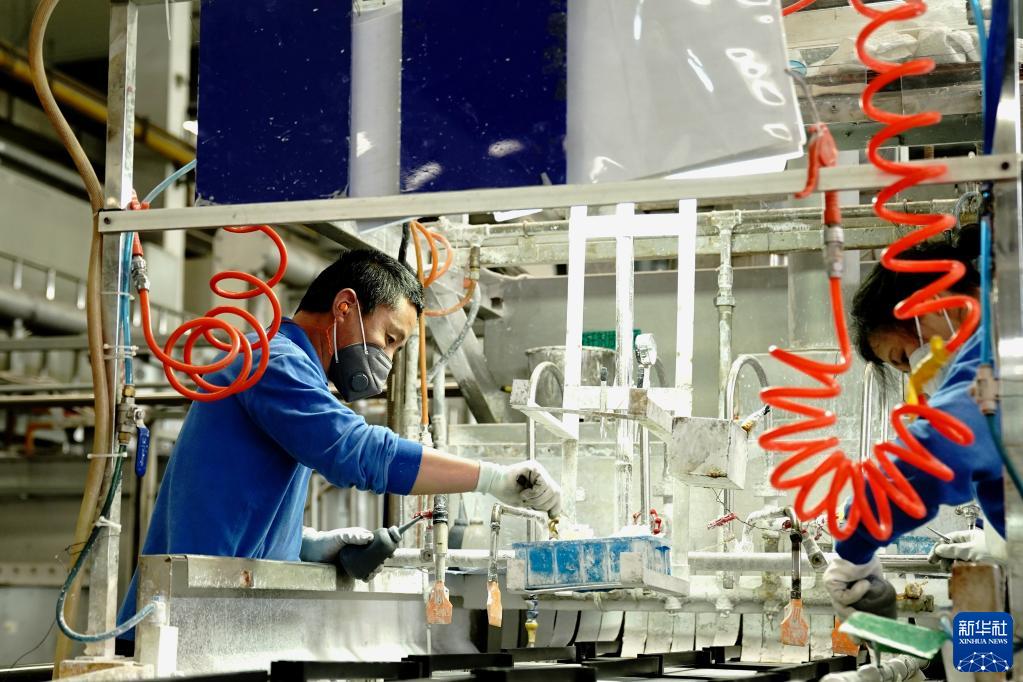 4月29日,上海加冷松芝汽車空調(diào)股份有限公司工人在生產(chǎn)車間忙碌。新華社記者 張建松 攝