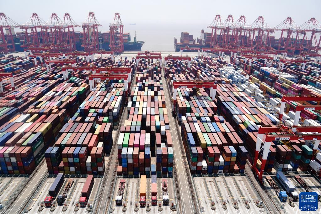 5月17日拍攝的上海洋山深水港四期自動(dòng)化碼頭。新華社記者 丁汀 攝