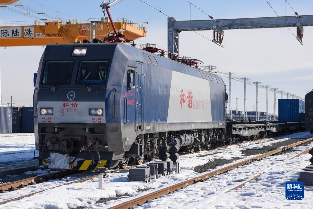 在新疆烏魯木齊,一列中歐班列緩緩駛離中歐班列烏魯木齊集結(jié)中心開往土耳其(2020年2月20日攝)。新華社記者 丁磊 攝