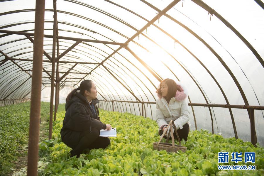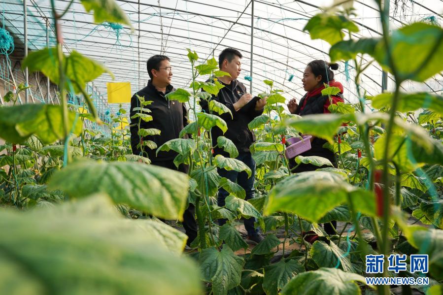 20201210日,河北省巨鹿縣紀委監(jiān)委工作人員(左一和左二)在巨鹿縣一個農業(yè)園區(qū)的大棚向種植戶了解扶貧資金落實情況。 新華社記者 牟宇 攝