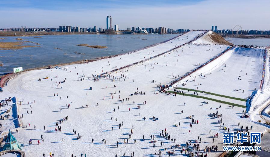 這是2021年1月30日,市民在寧夏銀川市閱海滑雪場(chǎng)體驗(yàn)冰雪項(xiàng)目(無(wú)人機(jī)照片)。新華社記者 馮開(kāi)華 攝