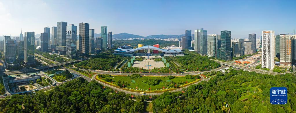 這是深圳市民中心和蓮花山公園一線(2020年10月2日攝,無人機照片)。新華社記者 梁旭 攝