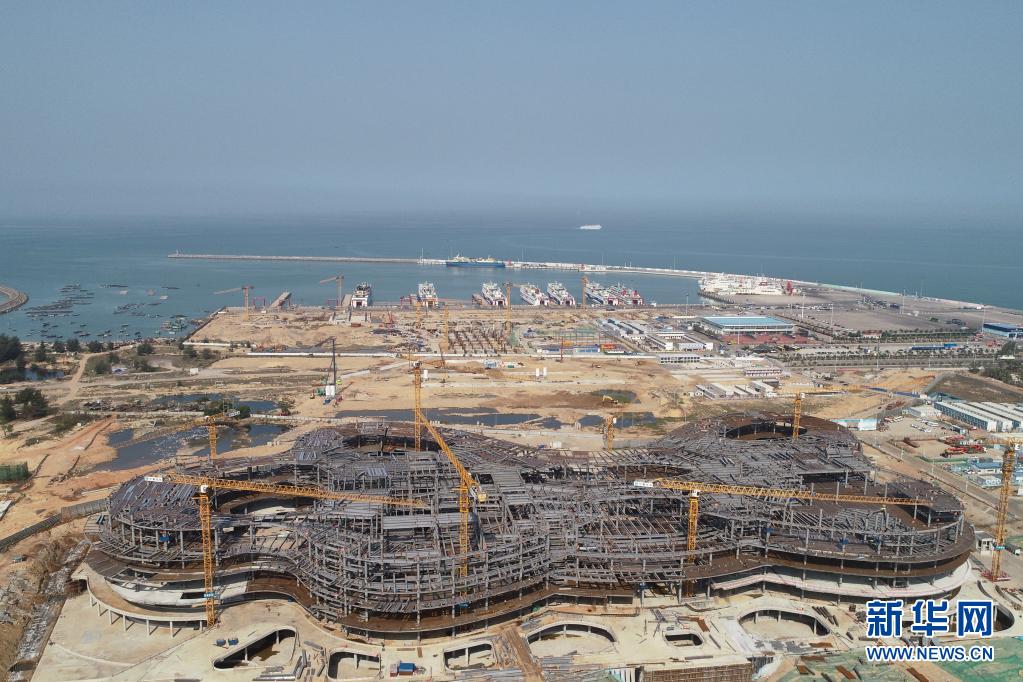 這是220日拍攝的??趪?guó)際免稅城項(xiàng)目施工現(xiàn)場(chǎng)(無(wú)人機(jī)照片)。新華社記者 張麗蕓 攝