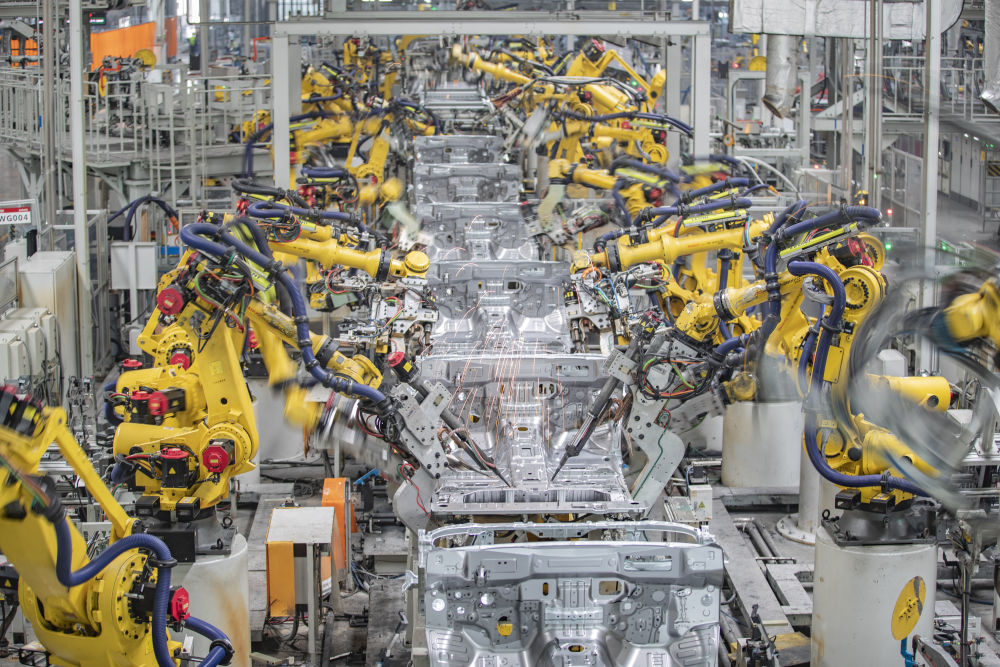 3月1日,在長城汽車重慶永川生產(chǎn)基地焊裝車間,智能化焊接機(jī)器人在進(jìn)行焊接作業(yè)。新華社記者 黃偉 攝