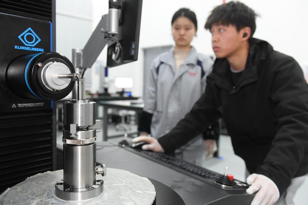??浙江豐立智能科技股份有限公司技術(shù)人員在實驗室測量齒輪精度。