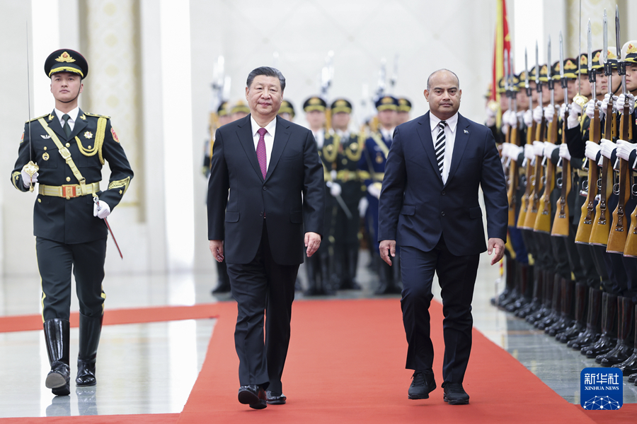 ??3月25日下午,國家主席習(xí)近平在北京人民大會堂同來華進行國事訪問的瑙魯總統(tǒng)阿迪昂舉行會談。這是會談前,習(xí)近平在人民大會堂北大廳為阿迪昂舉行歡迎儀式。新華社記者 劉彬 攝