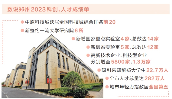 搭建平臺,用好政策,優(yōu)化服務,留住人才,“年輕鄭、文化鄭、國際鄭、科技鄭”成為鄭州的城市新標簽。2023年,中原科技城躍居全國科技城綜合排名前20;新簽約一流大學研究院6所,新增國家重點實驗室4家、總數(shù)達14家,新增省實驗室5家、總數(shù)達12家;高新技術企業(yè)、科技型企業(yè)分別增至5800家、1.3萬家;吸引來鄭留鄭大學生22.7萬人,全市人才總量達282萬人;全市常住人口平均年齡不超過35歲、城市年輕力指數(shù)居全國第五。