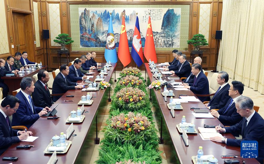 ??習(xí)近平表示,中柬鐵桿友誼成色十足,完全符合兩國人民共同利益。中方始終將柬埔寨作為周邊外交重點方向,愿同柬方攜手打造高質(zhì)量、高水平、高標(biāo)準(zhǔn)的新時代中柬命運共同體。雙方一要堅定相互支持,鞏固鐵桿友誼。中方將堅定支持柬埔寨維護國家主權(quán)、安全、發(fā)展利益。二要深化交流互鑒,共謀發(fā)展振興。中國共產(chǎn)黨愿同柬埔寨人民黨加強戰(zhàn)略溝通和干部培訓(xùn)合作,助力柬埔寨探索符合本國國情的發(fā)展道路。三要把握合作機遇,開拓共贏新局。中方愿同柬方以落實新版命運共同體行動計劃為主線,不斷充實“鉆石六邊”合作架構(gòu),制定“工業(yè)發(fā)展走廊”和“魚米走廊”合作規(guī)劃,推動重點合作項目落地見效,助力共建“一帶一路”倡議和柬埔寨“五角戰(zhàn)略”高質(zhì)量對接。