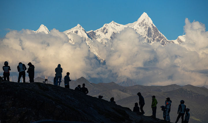 ??游客在色季拉山口的川藏公路邊觀賞南迦巴瓦峰風光(2023年9月5日攝)。新華社記者 丁增尼達 攝