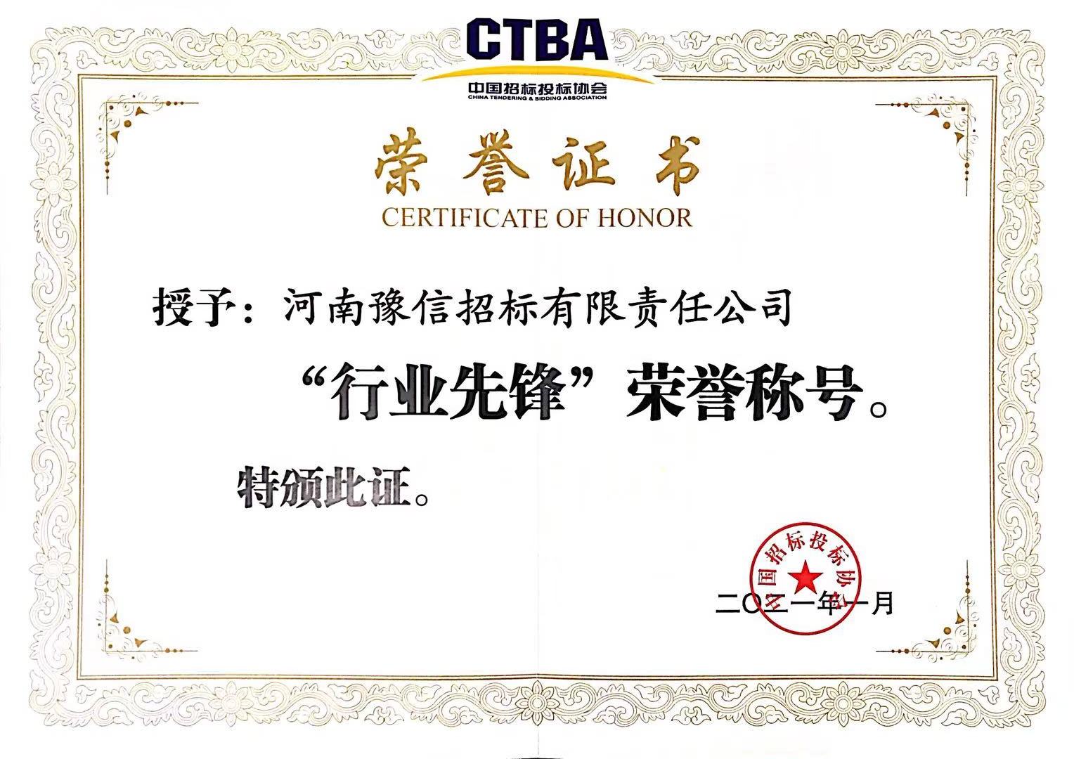 “行業(yè)先鋒”榮譽(yù)證書(shū) -