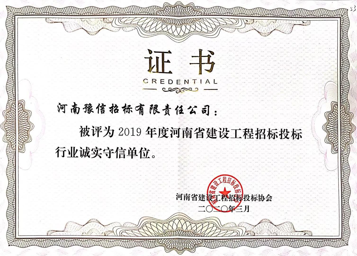 2017年度河南省建設(shè)工程招標(biāo)代理誠(chéng)實(shí)守信單位 -