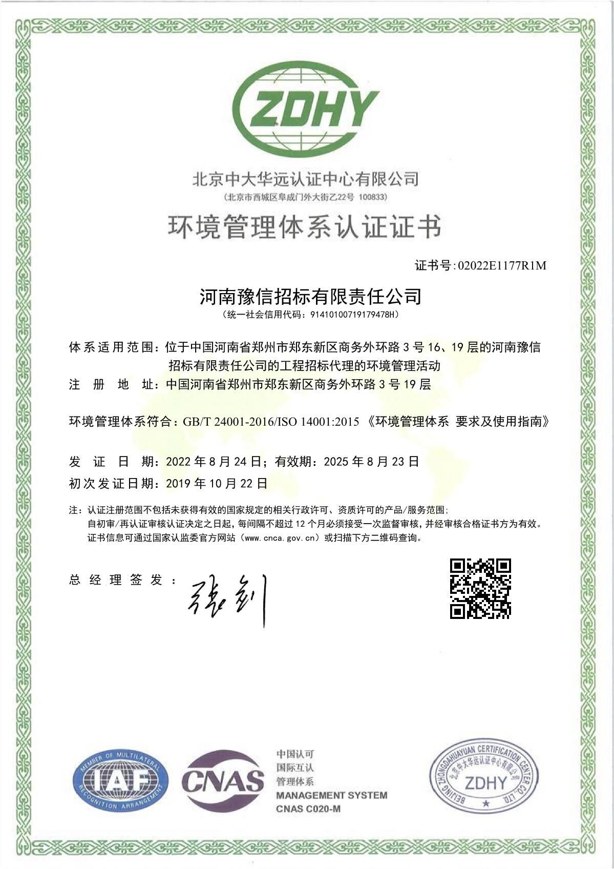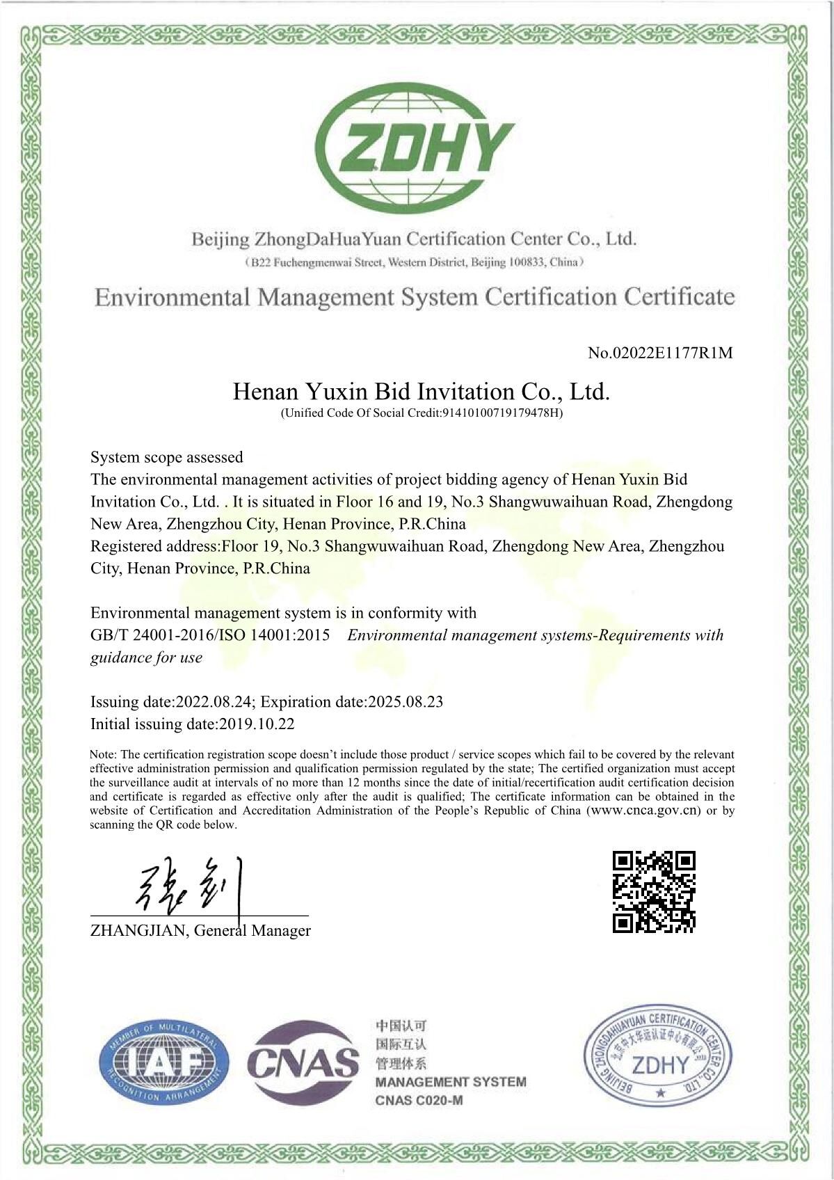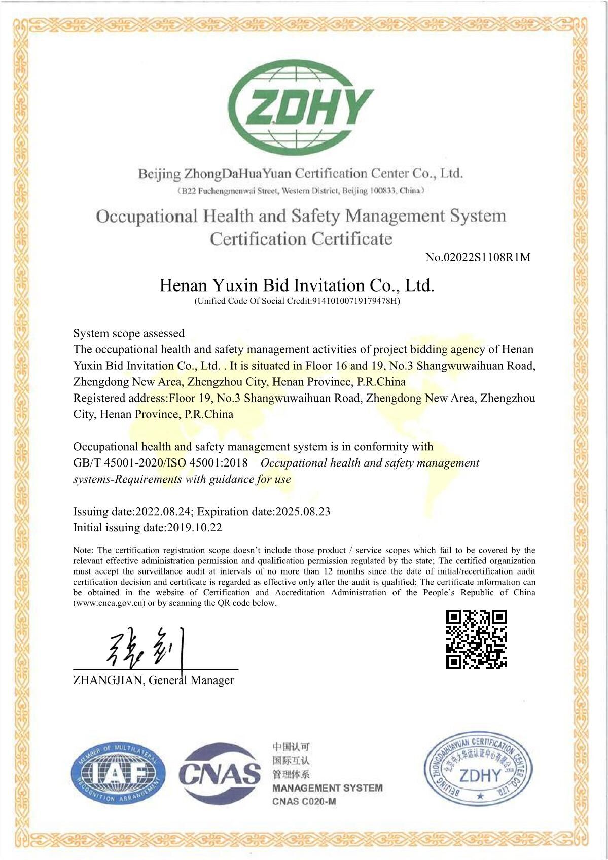 河南豫信招標有限責任公司OHSMSSMS英文證書