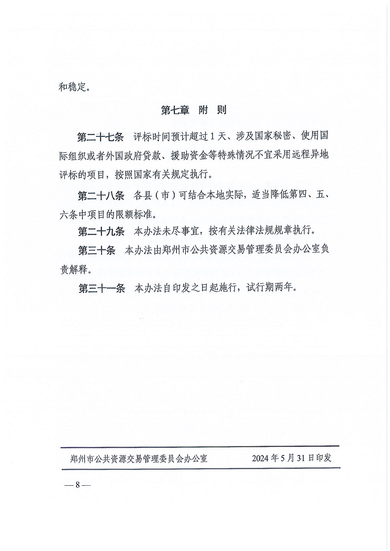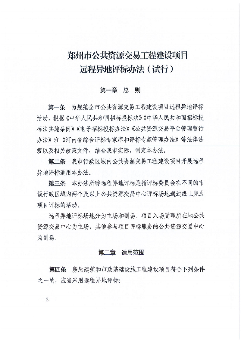 關(guān)于印發(fā)《鄭州市公共資源交易工程建設(shè)項目遠(yuǎn)程異地評標(biāo)辦法》的通知