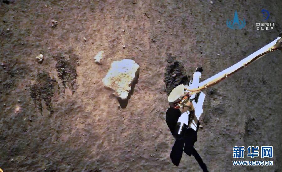 12月2日,嫦娥五號探測器在月球表面自動采樣。新華社發(fā)(國家航天局供圖)