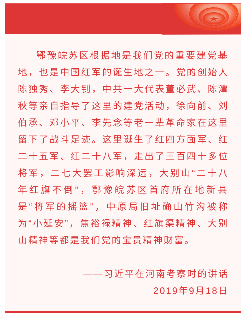 河南新縣是將軍的搖籃。土地革命時期,這里是黃麻起義的策源地、鄂豫皖革命根據(jù)地首府所在地,先后誕生了紅四方面軍等主力紅軍,走出了多位叱咤風(fēng)云的共和國將軍。