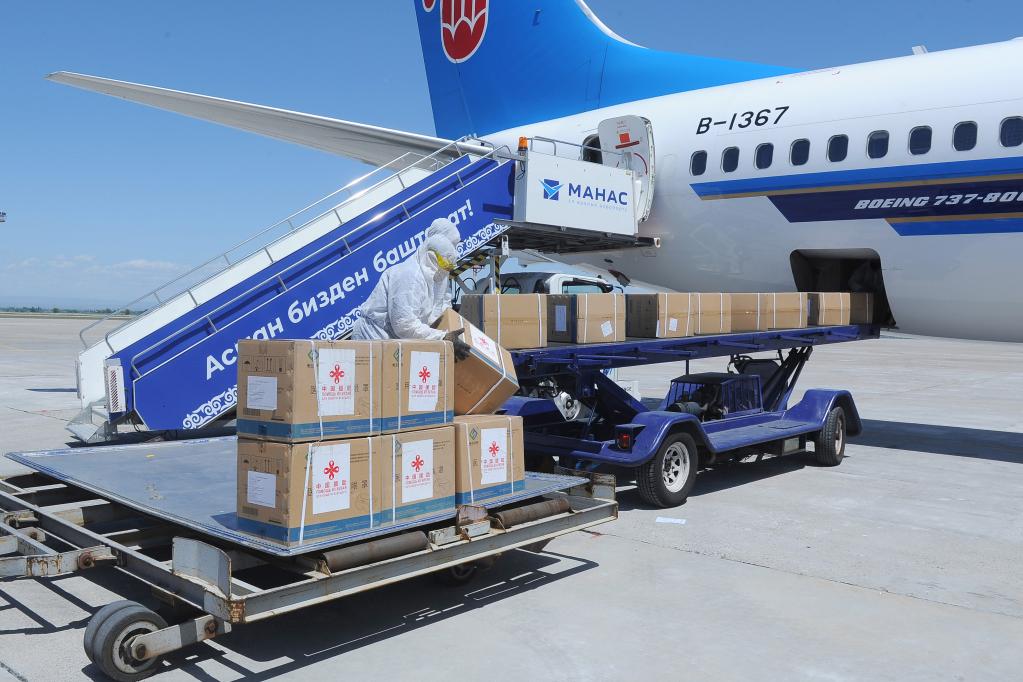 2020年5月11日,在吉爾吉斯斯坦首都比什凱克,中國政府第二批援吉抗疫醫(yī)療防護物資抵達瑪納斯國際機場。新華社發(fā)(吉爾吉斯斯坦政府新聞局供圖)