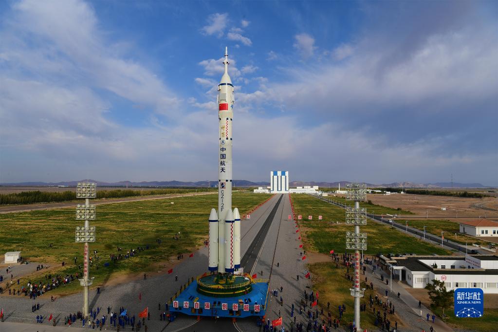 10月7日,神舟十三號載人飛船與長征二號F遙十三運載火箭組合體準備轉(zhuǎn)往發(fā)射區(qū)。新華社發(fā)(汪江波 攝)