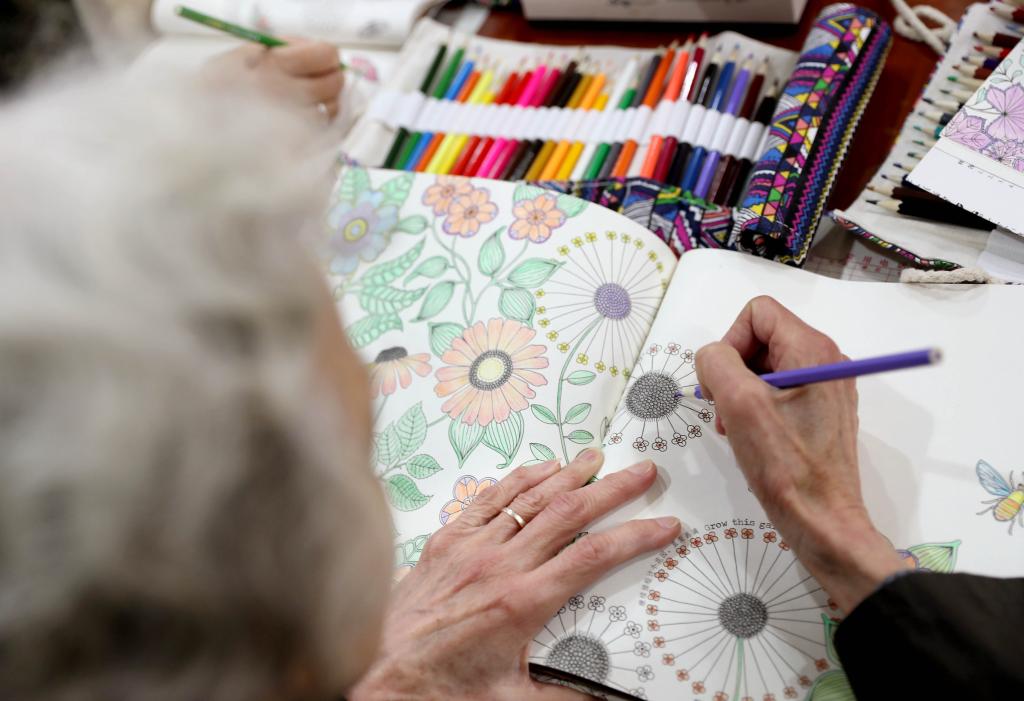 2020年11月,在上海市靜安區(qū)江寧路街道愛老家園,一位老年人在通過圖畫填色進(jìn)行康復(fù)訓(xùn)練(新華社記者劉穎 攝)