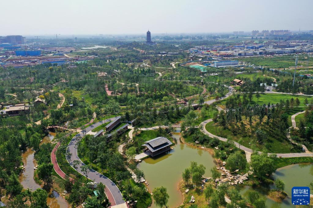這是雄安新區(qū)悅?cè)莨珗@北苑內(nèi)的景色(9月1日攝,無(wú)人機(jī)照片)。新華社記者 牟宇 攝