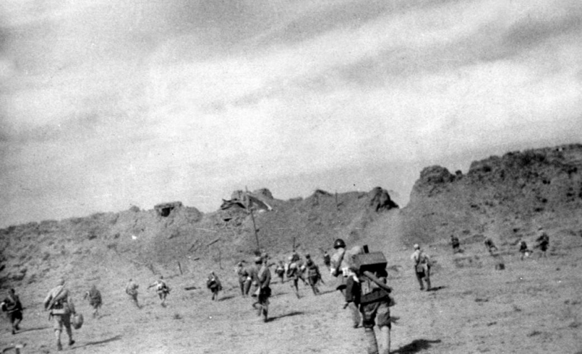 新華社沈陽1949年1月16日電《英雄的十月》,記錄了遼沈戰(zhàn)役戰(zhàn)場(chǎng)戰(zhàn)士們“地堡被轟坍了,轉(zhuǎn)到壕溝里打;壕溝被轟平了,跳進(jìn)彈坑打;子彈打光了用手榴彈打;手榴彈打光了用石頭打”。