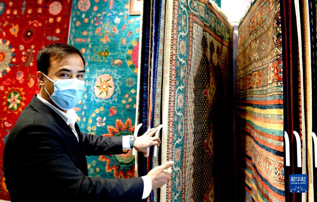20多平方米的小展臺(tái),沒(méi)有復(fù)雜的數(shù)字光影技術(shù),只有一臺(tái)筆記本電腦循環(huán)播放產(chǎn)品介紹。來(lái)自阿富汗的地毯商阿里說(shuō),只要賣(mài)出一張大幅的手工羊毛地毯,就能保障這個(gè)飽經(jīng)戰(zhàn)亂的國(guó)家一個(gè)普通家庭近一年的生活。