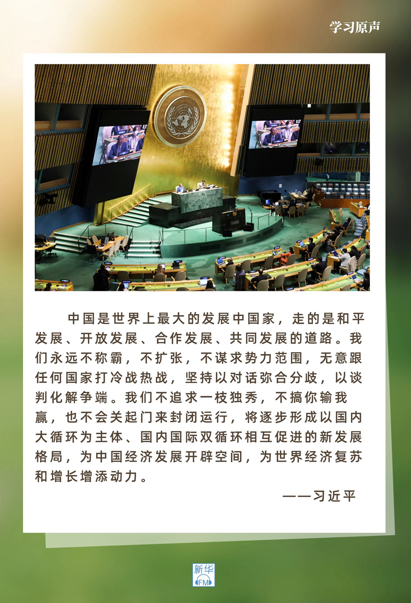 大道之行,天下為公。和平與發(fā)展是時代主題,也是不可抗拒的歷史潮流。中國將堅定站在歷史正確的一邊,站在人類進(jìn)步的一邊,同世界各國攜手并肩,向著構(gòu)建人類命運共同體光明未來不斷前進(jìn)。