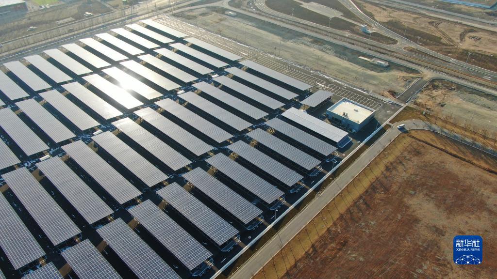 這是在遼寧省沈陽市的華晨寶馬鐵西新工廠拍攝的光伏發(fā)電設施(12月28日攝,無人機照片)。新華社記者 楊青 攝