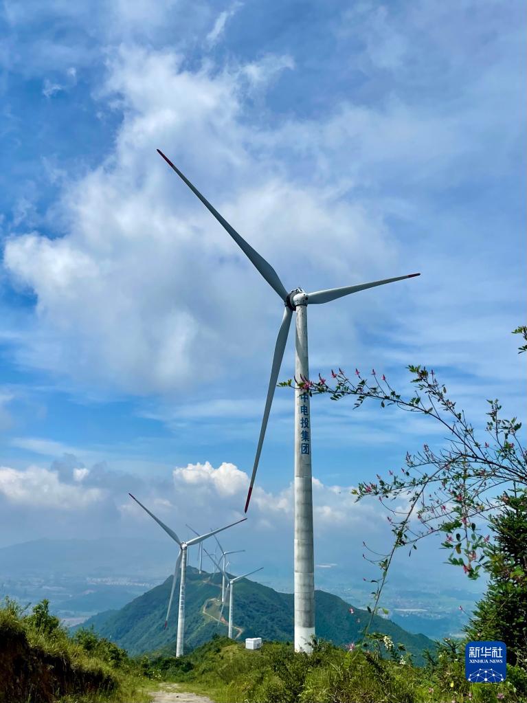 這是在湖南省汝城縣拍攝的風力發(fā)電機(8月23日攝)。新華社記者 蘇曉洲 攝