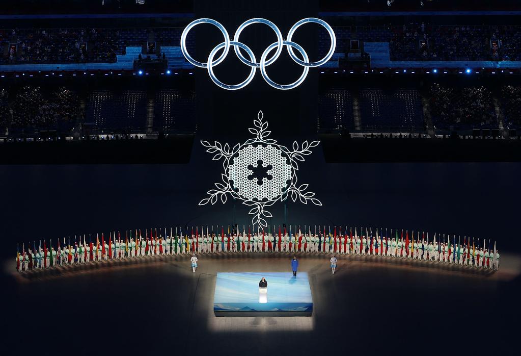 在北京冬奧會(huì)開幕式上,各代表團(tuán)引導(dǎo)員高舉雪花造型引導(dǎo)牌,匯聚到“鳥巢”中央,凝結(jié)成一片大雪花,呵護(hù)著中間圣潔的奧運(yùn)之火。正如開幕式總導(dǎo)演張藝謀所說,這里所展示的不僅是“我”,而且是“我們”,展現(xiàn)“一起向未來”的人類共同情感。
