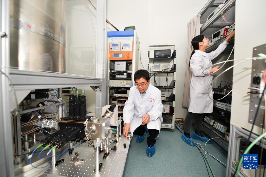 2月8日,中國科學(xué)院國家授時(shí)中心首席科學(xué)家張首剛(左)在銫原子噴泉鐘實(shí)驗(yàn)室工作。新華社記者 張博文 攝