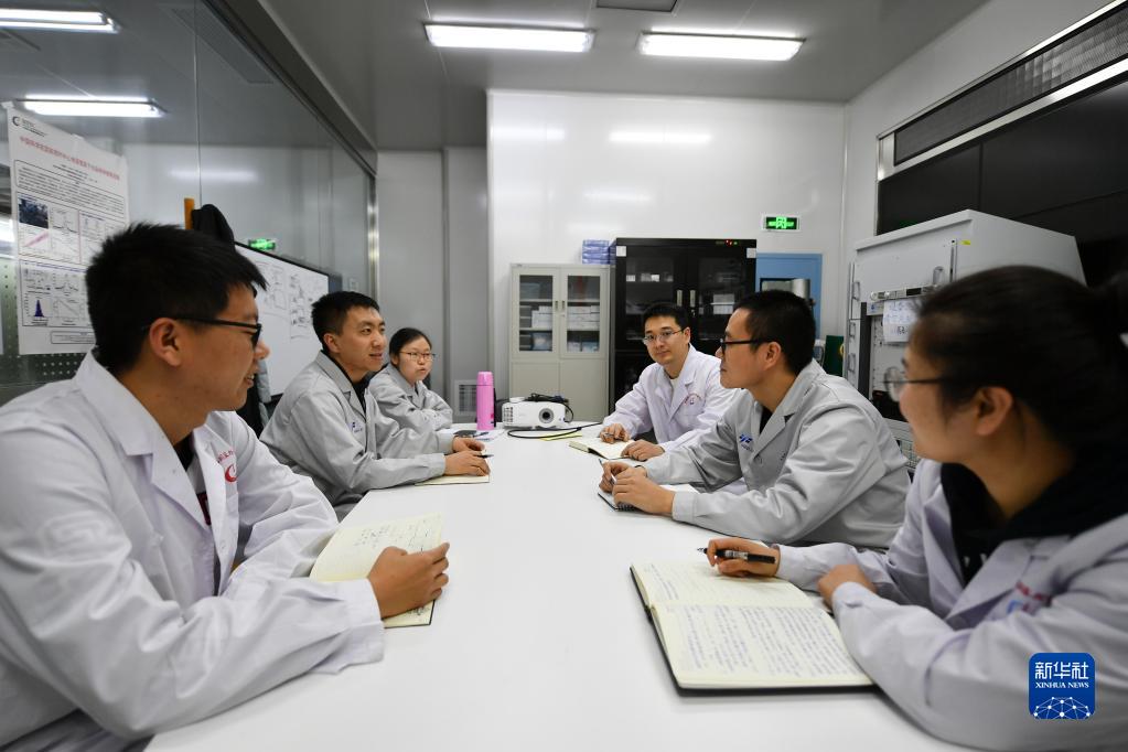 2月7日,科研人員在中國科學(xué)院國家授時(shí)中心空間鍶原子光鐘實(shí)驗(yàn)室討論項(xiàng)目進(jìn)度。新華社記者 張博文 攝