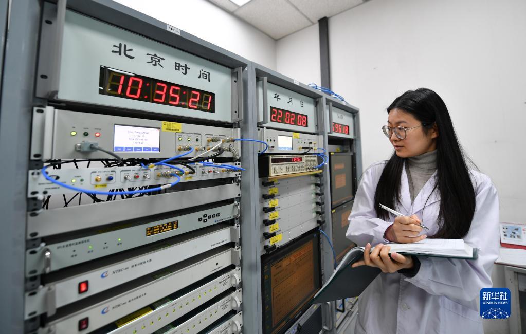2月8日,科研人員在中國科學(xué)院國家授時(shí)中心時(shí)間頻率基準(zhǔn)實(shí)驗(yàn)室記錄數(shù)據(jù)。新華社記者 張博文 攝