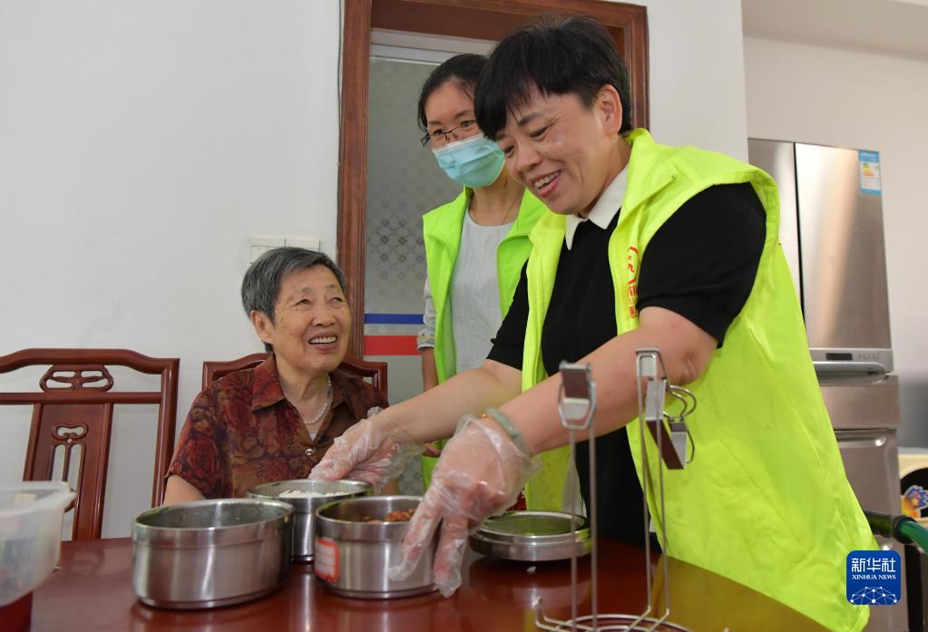 在江西省南昌市東湖區(qū)彭家橋街道文教路北社區(qū),“幸福食堂”的義工在給社區(qū)內(nèi)出行困難的老人提供送餐服務(wù)(2020年7月29日攝)。從2018年12月起,南昌市東湖區(qū)彭家橋街道在社區(qū)打造以黨建引領(lǐng)、社區(qū)主導(dǎo)、愛(ài)心企業(yè)贊助的“幸福食堂”,專門(mén)為社區(qū)獨(dú)居、孤寡及生活困難的老年人提供營(yíng)養(yǎng)餐,以此進(jìn)一步完善社區(qū)居家互助養(yǎng)老服務(wù)。新華社記者 彭昭之 攝