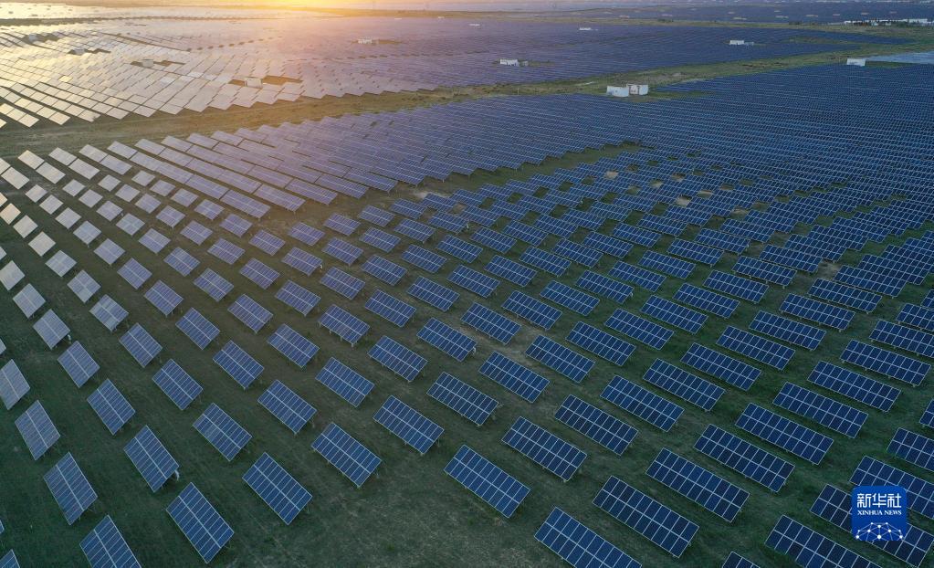這是青海省海南藏族自治州共和縣境內(nèi)的大唐青海公司新能源分公司光伏電站一角(2020年7月7日攝,無(wú)人機(jī)照片)。新華社記者 張宏祥 攝