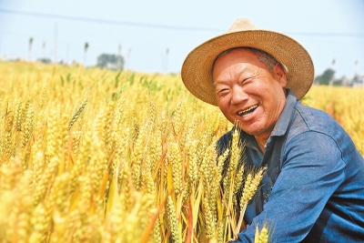 5月22日,杞縣五里河鎮(zhèn)東陶村農民望著即將成熟的小麥,臉上滿是欣喜。劉銀忠 攝