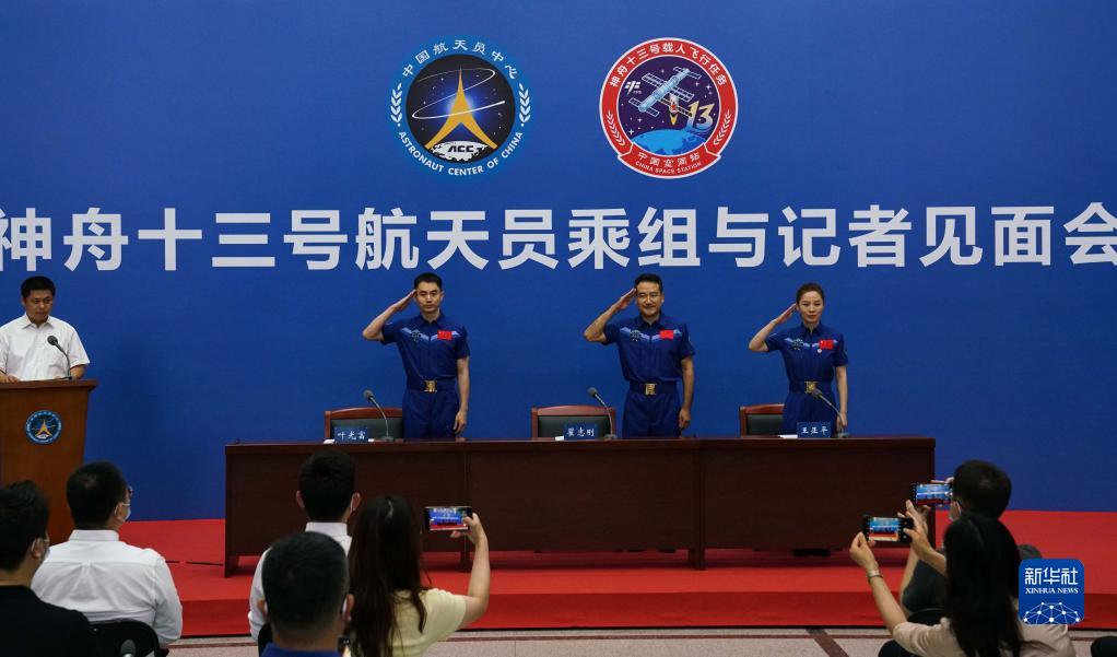 新華社北京6月28日電(黃一宸、占康)神舟十三號航天員乘組28日下午在北京航天城與媒體和公眾正式見面,這是他們天外歸來74天后的首次公開亮相。